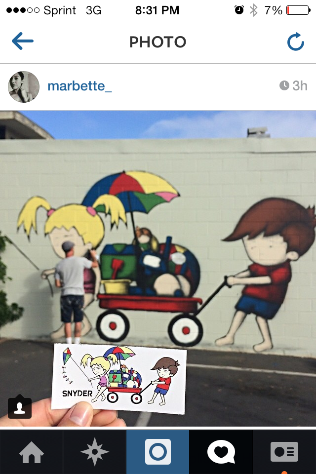 Each photo you see here was taken during the hunt and uploaded to Instagram. The first 10 hunt participants to find, photograph and upload to Instagram will win a Doodle piece of art designed by Snyder.